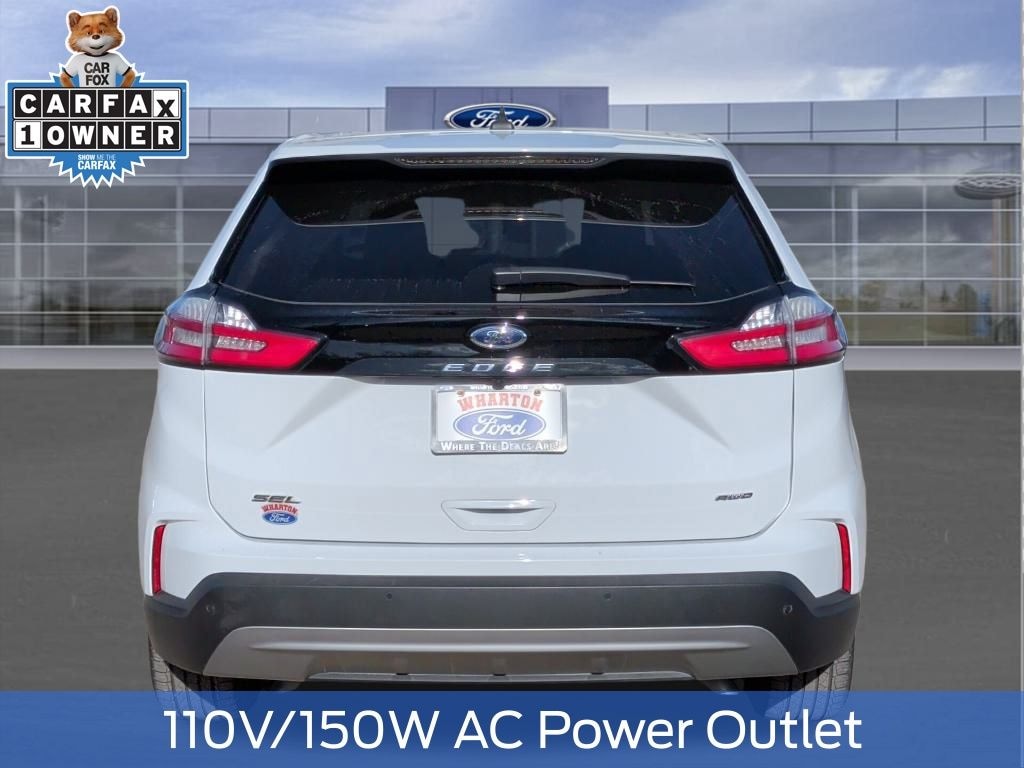 Certified. Oxford White 2024 Ford Edge SEL AWD 8-Speed Automatic EcoBoost 2.0L I4 GTDi DOHC Turbocharged VCT 1 OWNER, AWD, 110V/150W AC Power Outlet, Convenience Package, Equipment Group 201A, Fog Lamps w/Iconic Silver Bezel, Front Bucket Seats, Heated front seats, Perimeter Alarm, Power Liftgate, Power passenger seat, Remote Start System, Universal Garage Door Opener (UGDO), Wheels: 18" Sparkle Silver-Painted Aluminum, Wireless Charging Pad.