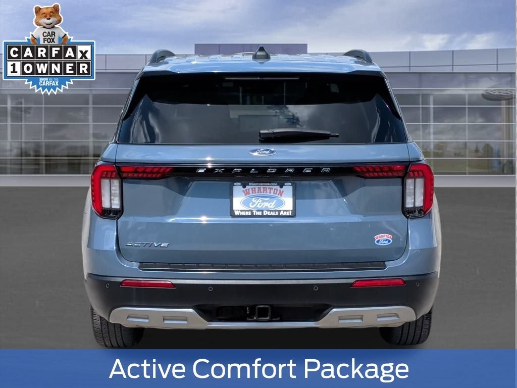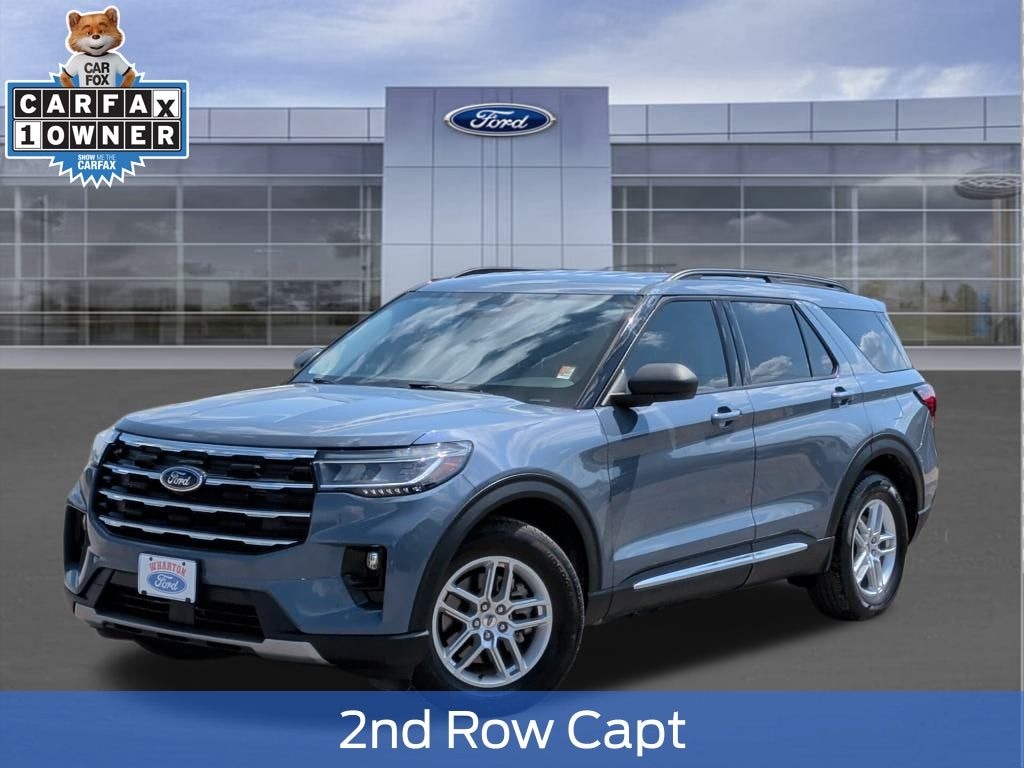 Certified. Vapor Blue 2025 Ford Explorer Active RWD 10-Speed Automatic 2.3L EcoBoost I-4 2nd Row Capt, Active Comfort Package, Equipment Group 200A Standard Package, Exterior Parking Camera Rear, Front Fascia, Heated ActiveX Seating Material Captain's Chairs, Heated front seats, Heated Steering Wheel, Illuminated entry, Navigation System, Power passenger seat, Remote Start System, Second Row HVAC Controls, Universal Garage Door Opener (UGDO), Wheels: 18" Sparkle Silver-Painted Aluminum.