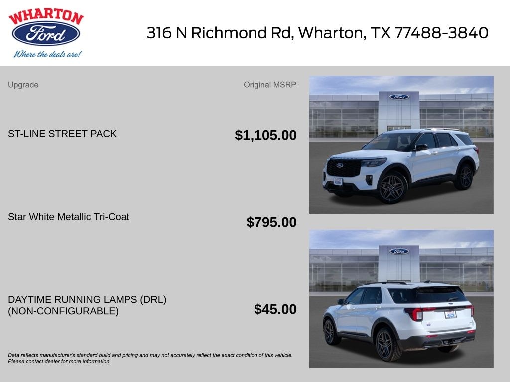 Certified. Star White Metallic Tri-Coat 2025 Ford Explorer ST-Line 4WD 10-Speed Automatic 2.3L EcoBoost I-4 1 OWNER, 4WD, Alloy wheels, Equipment Group 300A Standard Package, Navigation System, Performance Brakes, Red Painted Perf Front & Rear Brake Calipers, ST-Line Street Pack, Wheels: 21" Magnetite-Painted Aluminum.