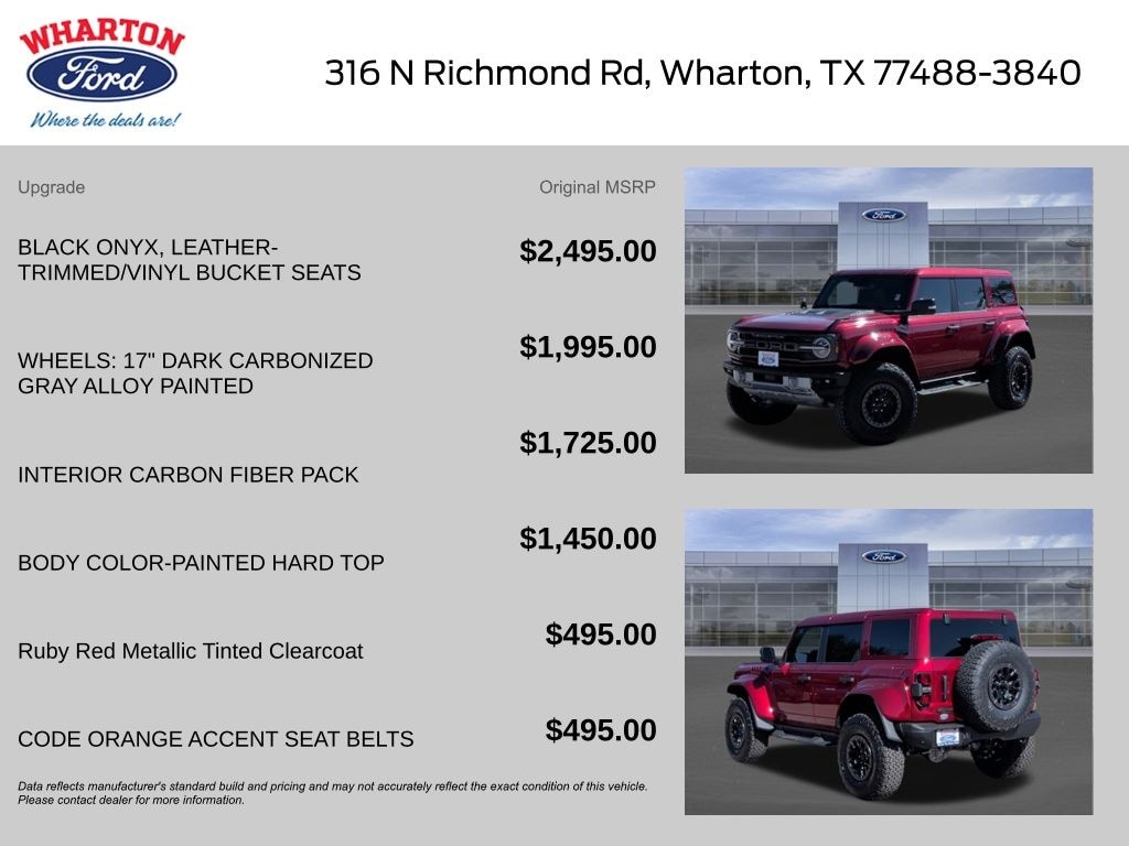 Ruby Red Metallic Tinted Clearcoat 2025 Ford Bronco Raptor 4WD 10-Speed Automatic 3.0L EcoBoost V6