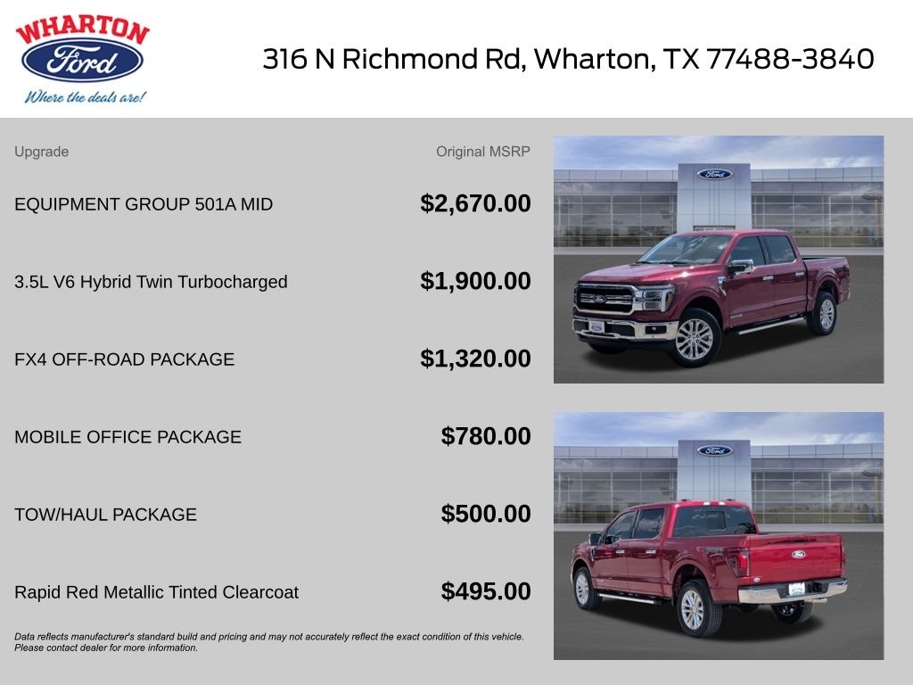 Rapid Red Metallic Tinted Clearcoat 2025 Ford F-150 Lariat 4WD 10-Speed Automatic 3.5L PowerBoost Full-Hybrid V6 3.5L PowerBoost Full-Hybrid V6, 4WD.