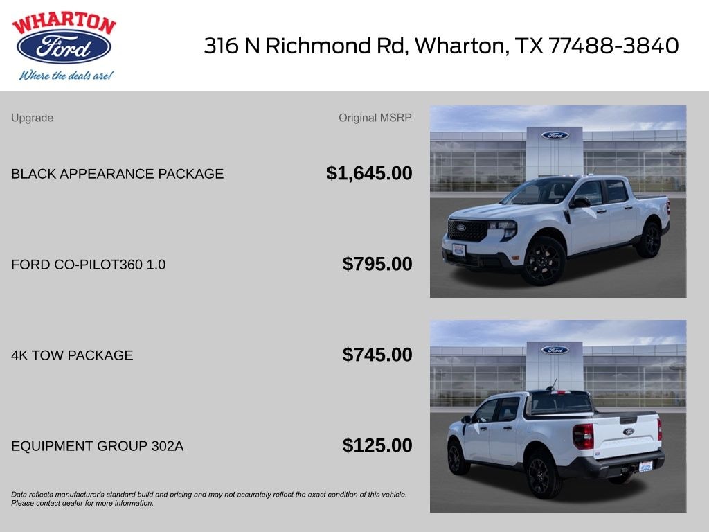 4K Tow Package (Trailer Brake Controller, Trailer Hitch (Class III) 2" Receiver, Transmission Oil Cooler, and Upgraded Cooling Fan), Black Appearance Package (Black Grille, Black Interior Accents, Black Painted Mirrors, Front & Back Black Edition Ford Logo, Unique Cloth Front Bucket Seats w/Black Appearance, and Wheels: 19" Black Painted Aluminum), Equipment Group 302A, Ford Co-Pilot360 1.0 (Auto High Beams, BLIS w/Cross-Traffic Alert, Cross Traffic Brake Assist, Evasive Steering Assist, Intersection Assist, Lane-Keeping System, Power Glass Manual-Folding Mirrors, Pre-Collision Assist w/Automatic Emergency Braking, Rear Parking Sensors, and Rear-View Camera), 2.91 Axle Ratio, 4-Wheel Disc Brakes, 6 Speakers, ABS brakes, Air Conditioning, Alloy wheels, AM/FM radio: SiriusXM with 360L, Apple CarPlay/Android Auto, Auto High-beam Headlights, Automatic temperature control, Brake assist, Bumpers: body-color, Compass, Delay-off headlights, Driver door bin, Driver vanity mirror, Dual front impact airbags, Dual front side impact airbags, Electronic Stability Control, Emergency communication system: SYNC 4 911 Assist, Exterior Parking Camera Rear, Four wheel independent suspension, Front anti-roll bar, Front Bucket Seats, Front Center Armrest, Front reading lights, Fully automatic headlights, Illuminated entry, Internet access capable: FordPass Connect 5G, Knee airbag, Low tire pressure warning, Occupant sensing airbag, Outside temperature display, Overhead airbag, Overhead console, Panic alarm, Passenger door bin, Passenger vanity mirror, Power door mirrors, Power steering, Power windows, Radio data system, Radio: AM/FM Stereo w/6 Speakers, Rear anti-roll bar, Rear seat center armrest, Rear step bumper, Remote keyless entry, Security system, SiriusXM w/360L, Speed control, Speed-sensing steering, Steering wheel mounted audio controls, SYNC 4 w/Enhanced Voice Recognition, Telescoping steering wheel, Tilt steering wheel, Traction control, Trip computer, Unique Cloth Front Bucket Seats, and Wheels: 17" Carbonized Gray Painted Aluminum. Price includes: $1000 - Final Days Mega Bonus Cash. Exp. 01/02/2026 $1000 - Retail Customer Cash. Exp. 01/05/2026