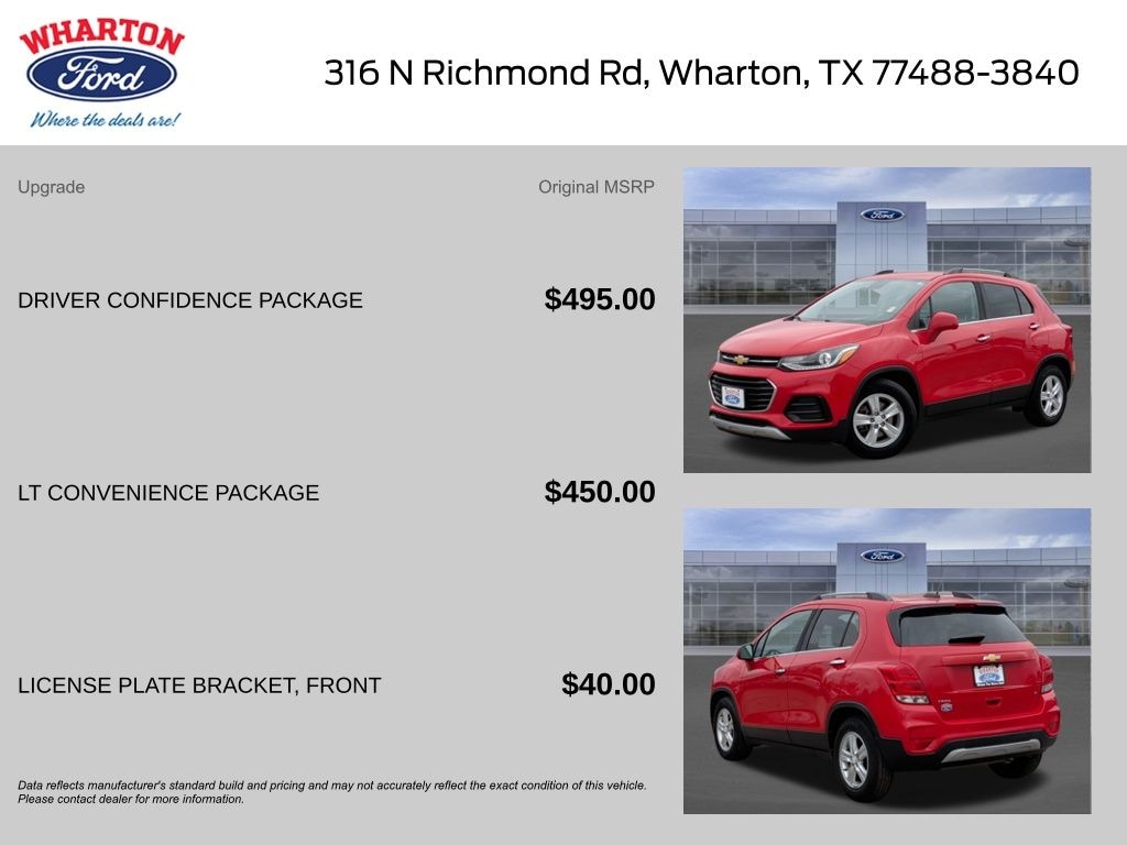 Red Hot 2018 Chevrolet Trax LT FWD 6-Speed Automatic ECOTEC 1.4L I4 SMPI DOHC Turbocharged VVT LOW MILES, 16" Aluminum Wheels, 2 Spare Keys Key System, 2-Way Manual Front Passenger Seat Adjuster, 3-Spoke Leather-Wrapped Steering Wheel, 4-Way Manual Driver Seat Adjuster, 6-Way Power Driver Seat Adjuster, Alloy wheels, Body-Color Door Handles w/Chrome Accent, Deluxe Cloth/Leatherette Seat Trim, Driver Confidence Package, Driver's Seat Mounted Armrest, Exterior Parking Camera Rear, Front Bucket Seats, Front Bucket Seats w/Driver Power Lumbar, Heated door mirrors, Keyless Open, Keyless Start, LT Convenience Package, Power windows, Preferred Equipment Group 1LT, Rear Cross-Traffic Alert, Rear Park Assist w/Sensor Indicator, Side Blind Zone Alert, Steering wheel mounted audio controls.