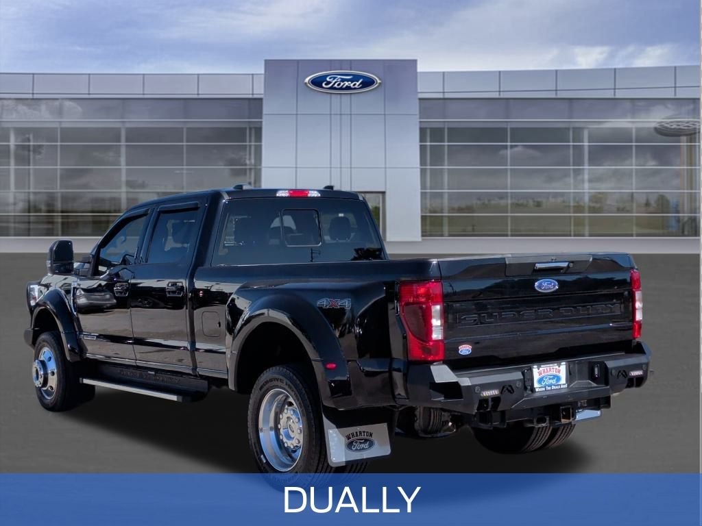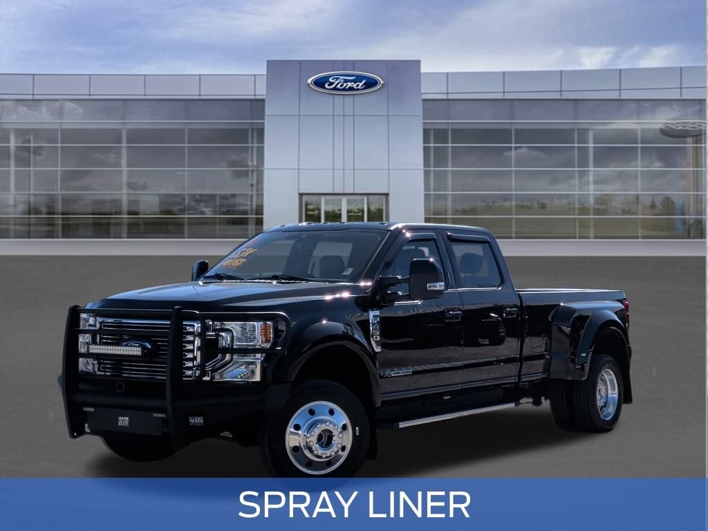 Agate Black Metallic 2022 Ford F-450SD Lariat DRW 4WD 10-Speed Automatic Power Stroke 6.7L V8 DI 32V OHV Turbodiesel SPRAY LINER, CUSTOM BUMPERS, DUALLY, 4WD, BLIS Blind Spot Information System, Easy Entry®/Exit Memory Driver's Seat Feature, GVWR: 14,000 lb Payload Package, Heated Driver & Passenger Seats, Heated front seats, Lariat Value Package, LED Box Lighting, Memory seat, Navigation system: Connected Navigation, Order Code 678A, Power Heated/Ventilated Driver Seat w/Memory, Power Heated/Ventilated Passenger Seat, Power steering, Power windows, Power-Adjustable Pedals with Memory, PowerScope Trailer Tow Mirrors w/Memory, Remote Start System, Steering wheel mounted audio controls, Universal Garage Door Opener (UGDO), Ventilated front seats.