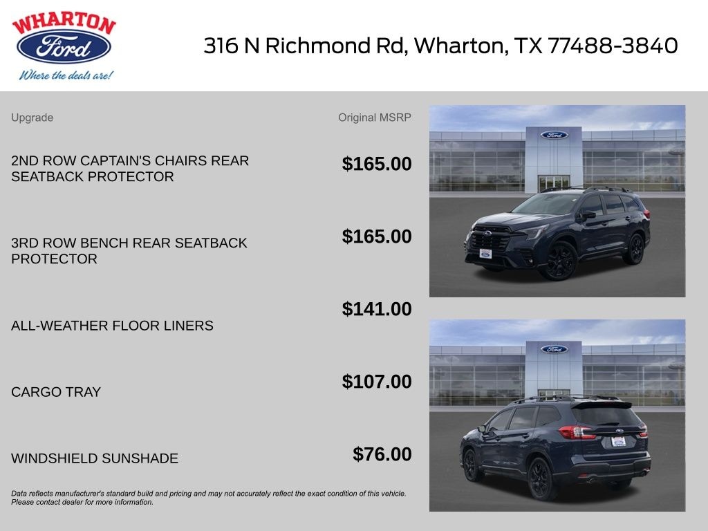 Cosmic Blue Pearl 2023 Subaru Ascent Onyx Edition AWD Lineartronic CVT 2.4L 4-Cylinder DOHC 16V 2nd Row Captain's Chairs Rear Seatback Protector, 3rd Row Bench Rear Seatback Protector, All-Weather Floor Liners, Alloy wheels, Auto-Dimming Exterior Mirror w/Approach Light, Black Chrome Rear Bumper Cover, Cargo Tray, Heated Front Bucket Seats, Heated front seats, Map & Reading Lights LED Upgrade - 6 Bulb Kit, Popular Package - Onyx, Power moonroof, Splash Guards, Wheels: 20" x 7.5 J Aluminum Alloy w/Black Finish.